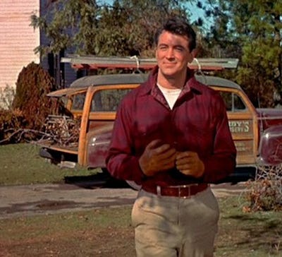 All That Heaven Allows, directed by Douglas Sirk, is a 1955 melodrama about a love affair between a wealthy socialite and widow, Carrie Scott (Jane Wyman), and her gardener, Ron Kirby (Rock Hudson). This relationship of lopsided status stirs up a Wasps’ nest of consternation among family and friends. When Carrie brings Ron to a country club event, they endure withering judgements from “friends” and she is assaulted in the coat room by someone’s drunken husband who thinks her relationship with the help signals she’s fair game. Ron has to punch him in the face.